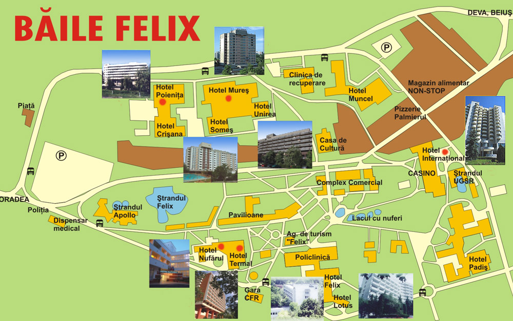 Hotel International är ett fyr stjärningt åretruntöppet hotell med centralt läge i Baile Felix, 12 våningar, 219 rum (80 enkelrum, 107 dubbelrum, 29 suite, 3 handikappanpassade rum) med en total av 300 sovplatser. Alla rum har centralvärme, dusch/badkar, WC, hårtork, telefon, satellit-TV, minibar, kassaskåp, luftkonditionering, internet, balkong. Hotellet har även 2 innepool, 2 termalvatten utepool, 2 konferensrum för 120-200 platser, fitnessrum, bar, teras, kafeteria, restaurang (300 platser), manikyr, pedikyr, skönhetssalong, minigolf, samt ett modernt KUR, BEHANDLING, WELLNESS CENTER som har erhållit EUROSPA certifikat som bäkreftelse på ESPA - standard och som erbjuder bl a: