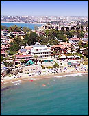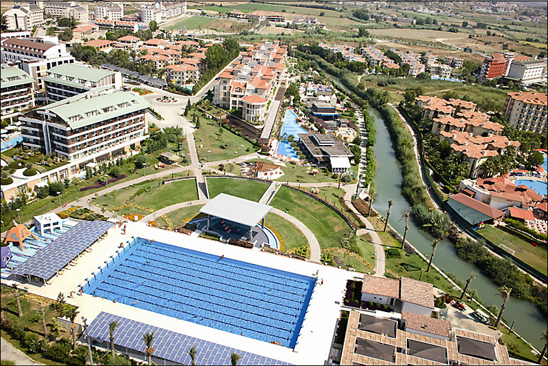 Hotellet har ett fint grönområde, härliga poolområden, barnpool och vatten-rutschkanor. Barer och restauranger. Egen stranddel med solstolar, parasoller och handdukar. Snackbar på stranden. Övrigt: Byggt 2004, Avstånd: Stranden 0 m,Lokalt Centrum (Kumköy) 500m, Ant. våningar 4, Hiss Ja, Pool Ja, Barnpool Ja, Restaurang Ja, Bar Ja, Internet Ja, Luftkond. Inkluderad, Deponering mot avgift, Antal rum 243, alla stora och ljusa, mycket bra standard, minibar, telefon, TV. Badrum med dusch, WC, hårtork. Internettillgång. Andra faciliteter: inomhus – och utomhus restauranger, barer, butiker, frisör, inomhuspool samt Spa, tennisbana mot tilläg, aerobics, pingis, biljard. bastu, turkiskt bad. |