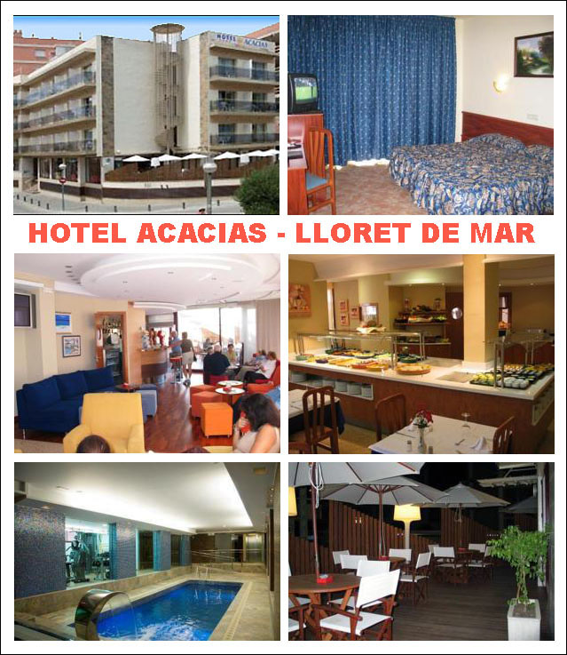 Acacias Hotel ligger i Lloret de Mar nära Lloret de Mar-slottet, ca 2 minuter från stranden Lloret de Mar och Vattenland ca 2km. Till Llorets bussstation (bussar till och från Barcelona, Girona. mm.) det är ca 950m och till Blanes tågstation ca 6 km.
