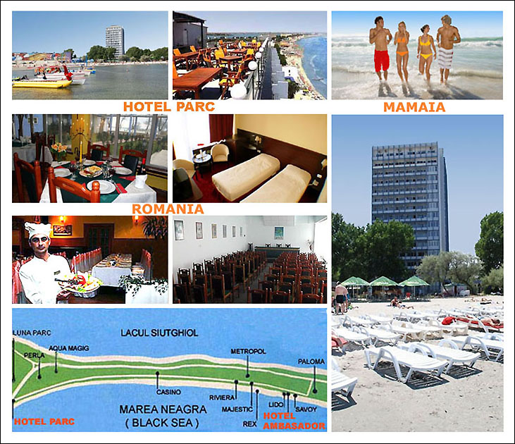 Hotel Parc har strandläge och utsikt både till Svarta havet och Siutghiol sjön vid södrainfarten till Mamaia, ca. 200m